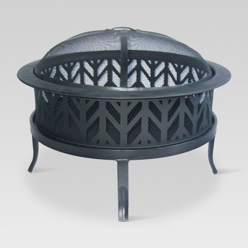 Garden treasures 29 92 inch wide antique black steel wood burning fire pit is an aesthetically pleasing product for the suburban backyard.